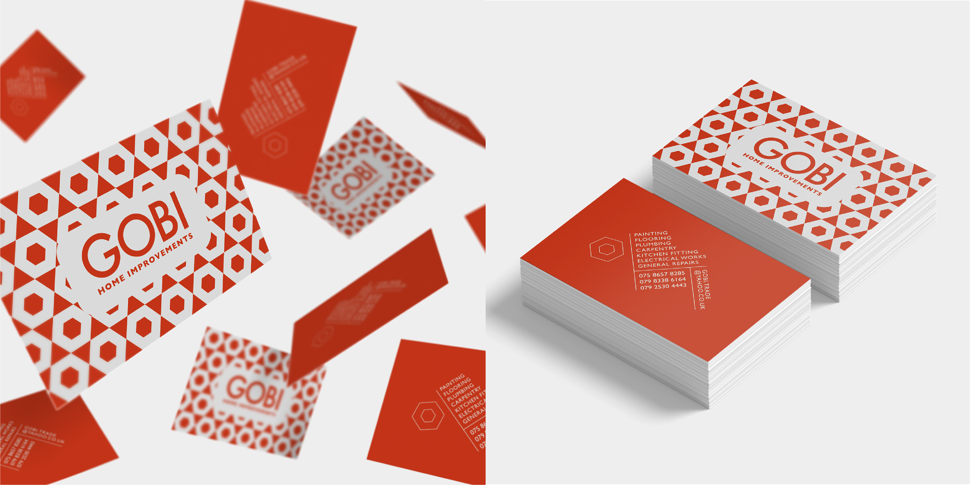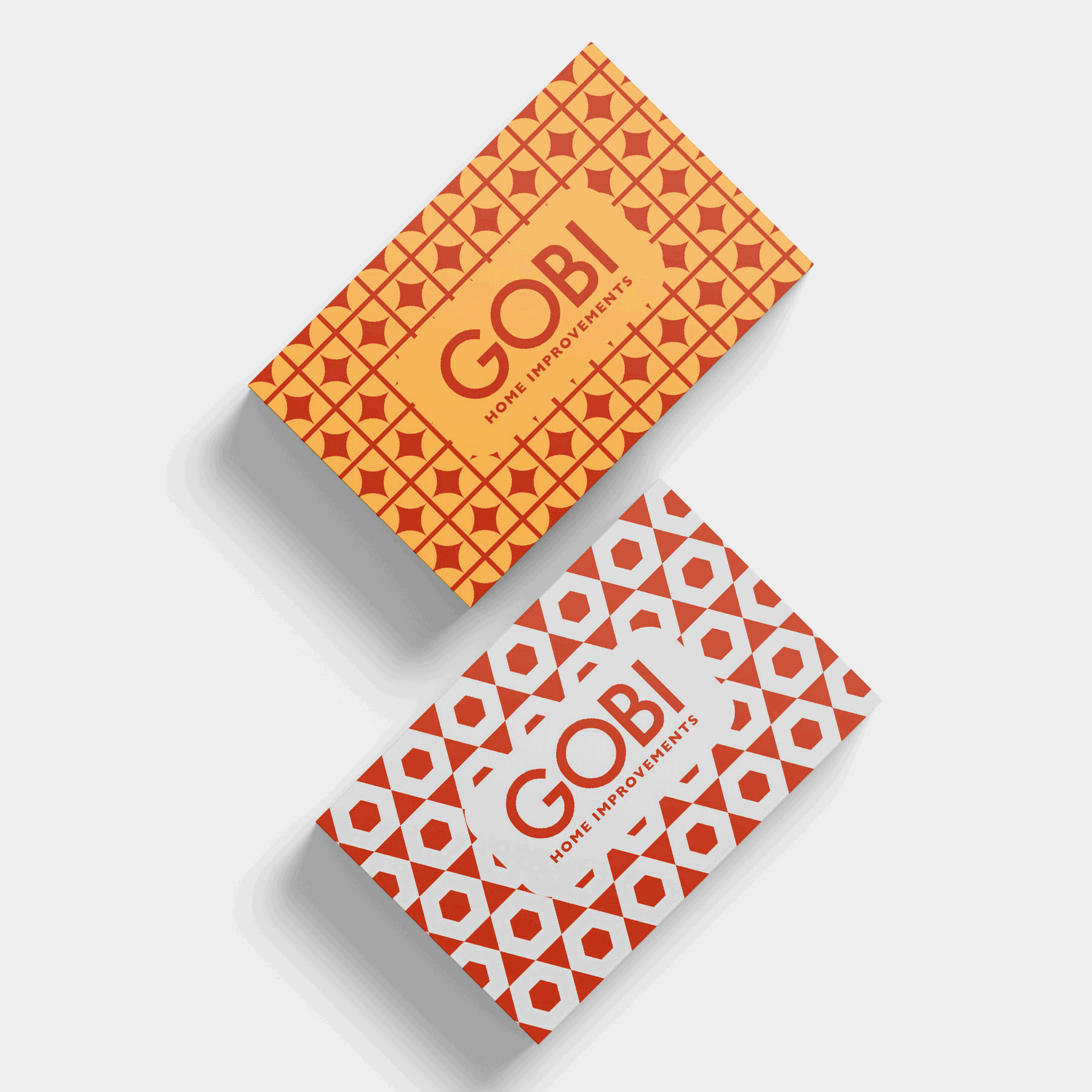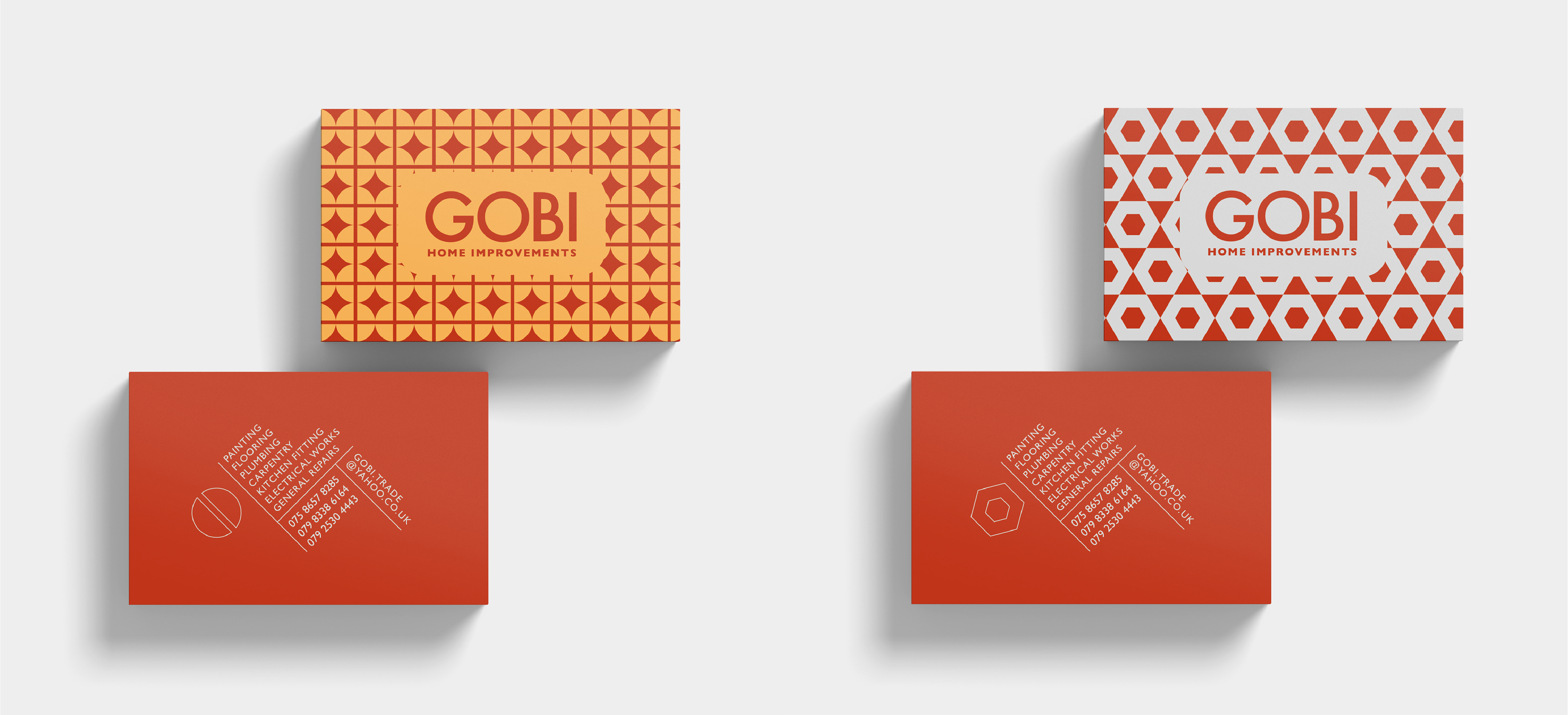 Business cards design for Gobi - a small home improvements company from London. The design is based on various shapes of screws and bolts and the cards were printed in retro-style colour scheme to represent the old fashioned handyman's trade.