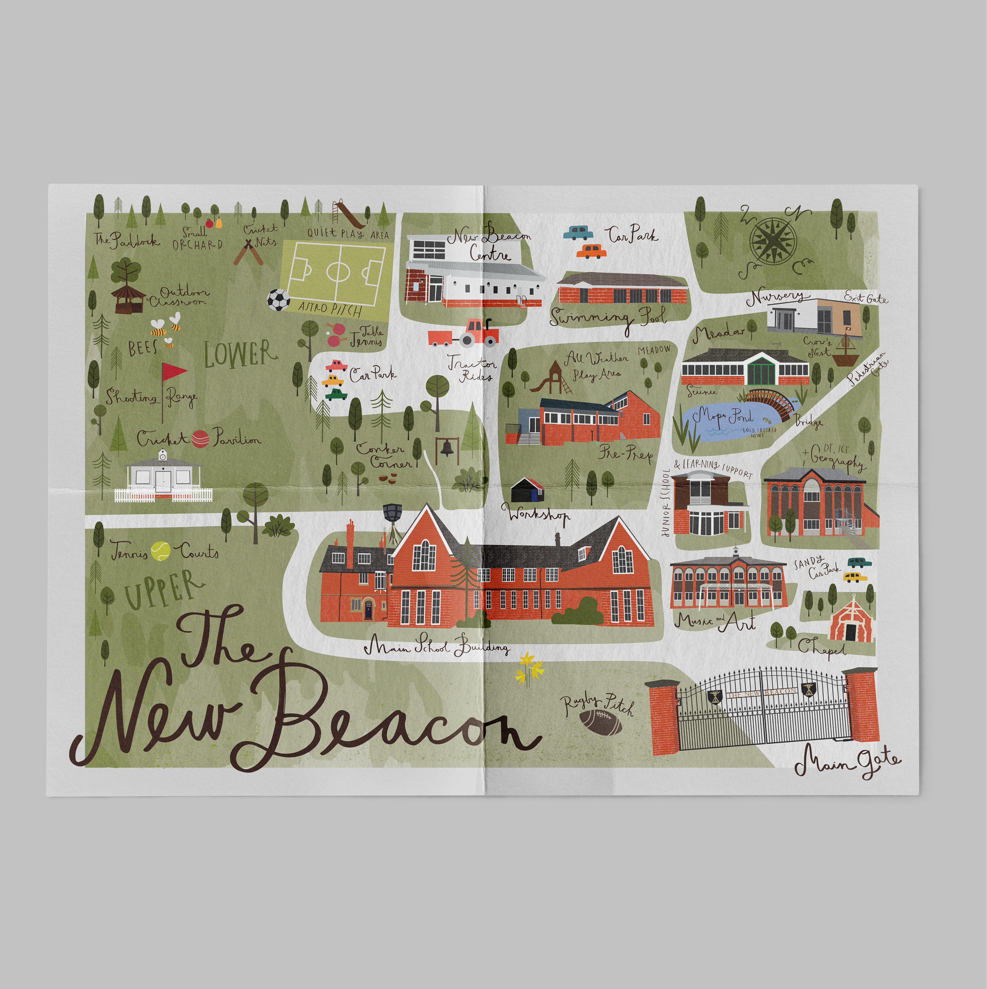 A design and illustration of the map for The New Beacon School grounds, Sevenoaks, UK.